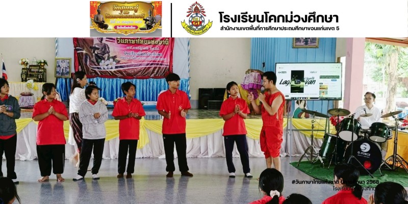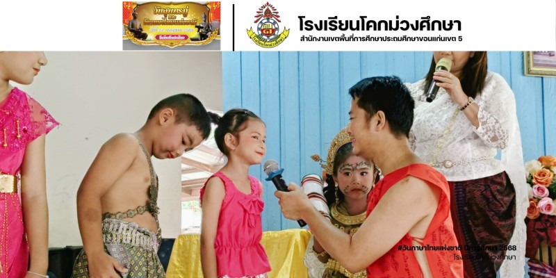 วันที่ 24 กรกฎาคม 2568 โรงเรียนโคกม่วงศึกษา นำโดย น.ส.ภัณฑิญาภา เขียนชานาจ ผู้อำนวยการโรงเรียน พร้อมด้วยคณะครูและนักเรียน ได้จัดกิจกรรมวันภาษาไทย ปีการศึกษา 2568 เพื่อให้นักเรียนตระหนักถึงความสำคัญและคุณค่าของภาษาไทย มีกิจกรรมประกวดทั้งหมด 3 กิจกรรม คือ คัดลายมือ วาดภาพระบายสี ประกวดแต่งแฟนซีตัวละครวรรณคดี และมีกิจกรรมสนุกสนามมากมายภายในงาน ซึ่งเป็นกิจกรรมที่ส่งเสริมการใช้ภาษาและอนุรักษ์ภาษาไทยให้กับนักเรียน